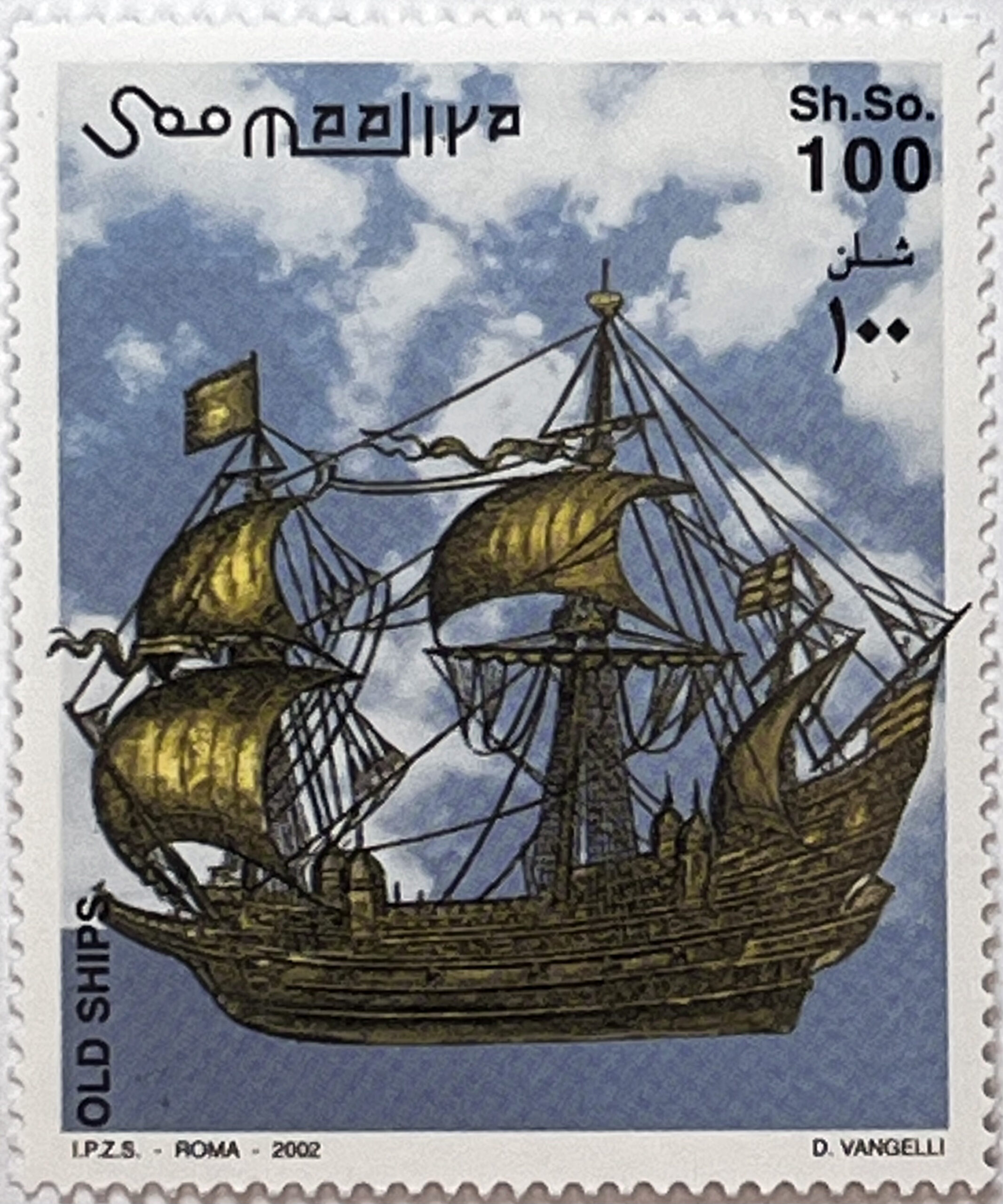 A complete philatelic set from Somalia from 2002, dedicated to majestic sailing ships from bygone eras.