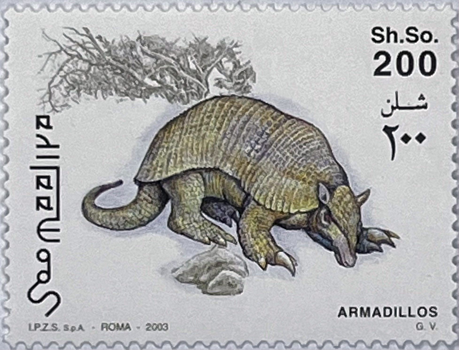 I am offering an extremely detailed philatelic series from Somalia from 2003, featuring armadillos – one of the most fascinating animals in the world. The series is characterized by subdued, natural colors and masterful detail.