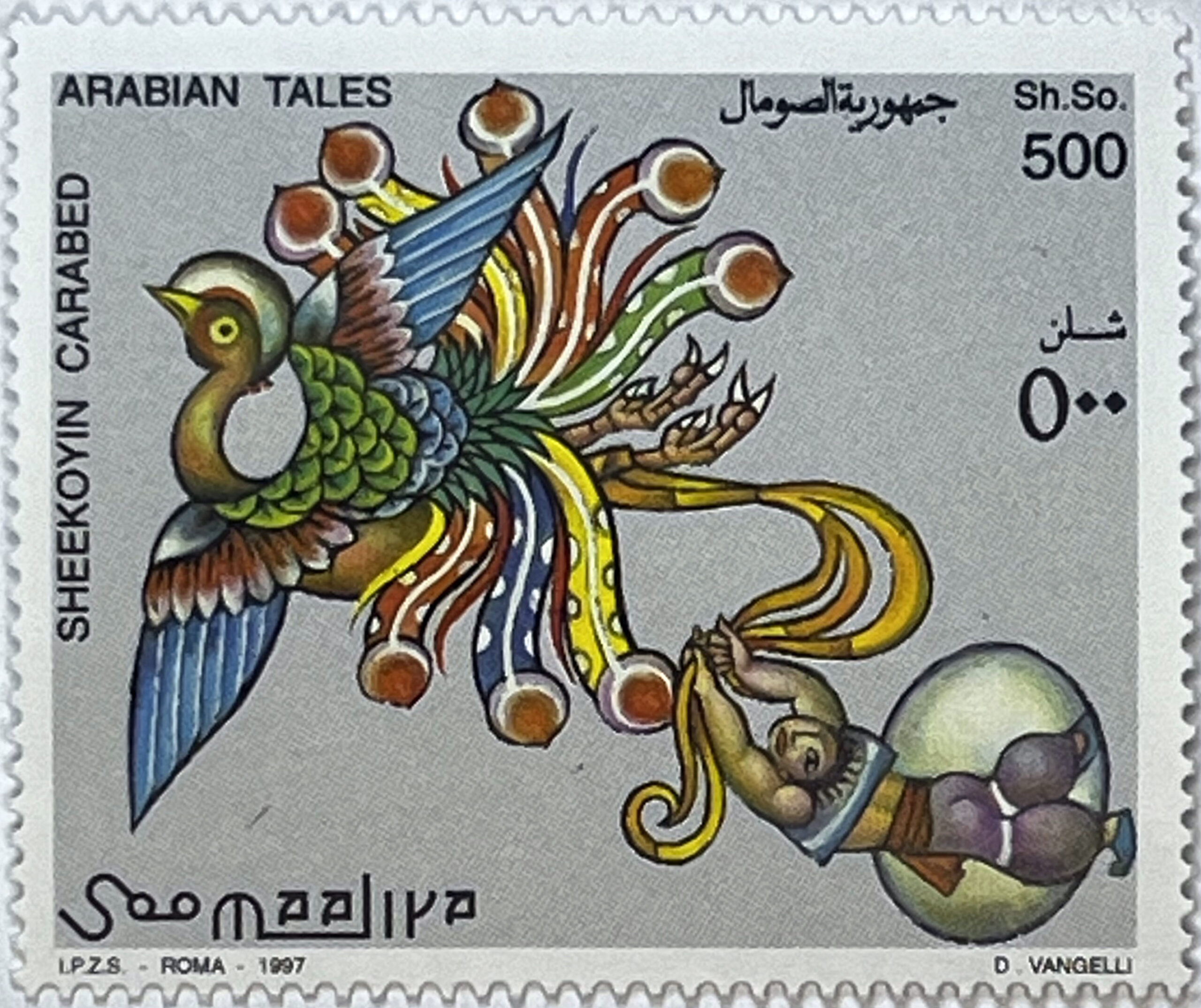 500 Sh. So.: Mityczny ptak (prawdopodobnie Rok) i postać trzymająca olbrzymie jajo.