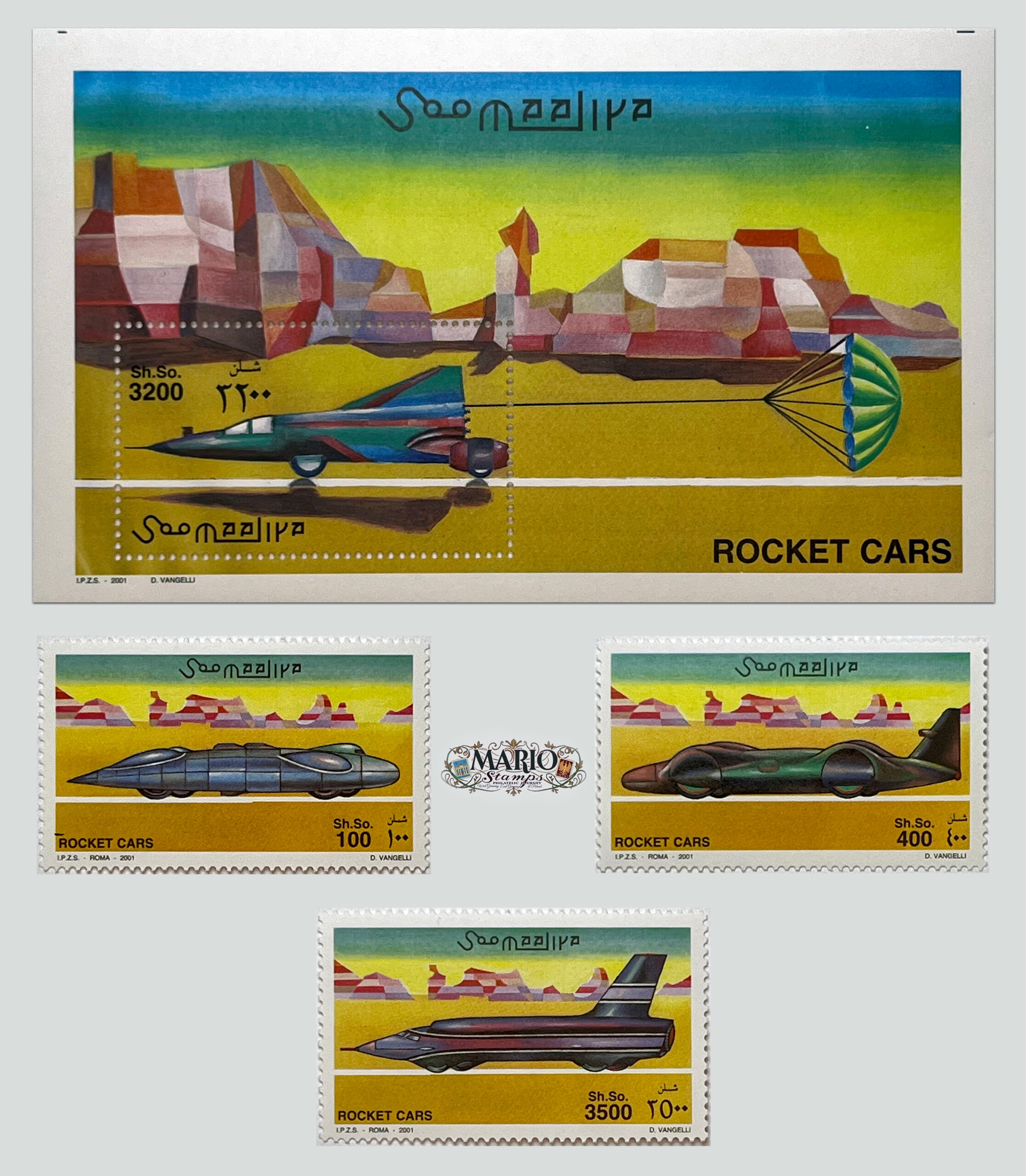 Ta futurystyczna emisja z 2001 roku to hołd dla inżynieryjnego geniuszu i pogoni za prędkością. D. Vangelli ponownie wykorzystuje swój unikalny styl, łącząc aerodynamiczne sylwetki pojazdów z kubistycznym krajobrazem pustynnym, przypominającym legendarne dno wyschniętego jeziora, gdzie bite są rekordy prędkości. Wyrazista, niemal komiksowa kreska i nasycone barwy nadają serii niesamowitego tempa.